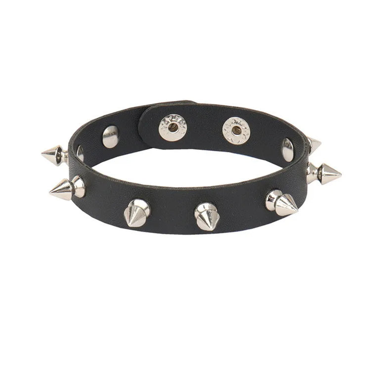 Punk Bracelet for Men Women - Goth Black Leather Wristband with Metal Spike Studded- Spike Rivets Cuff Bangle Adjustable