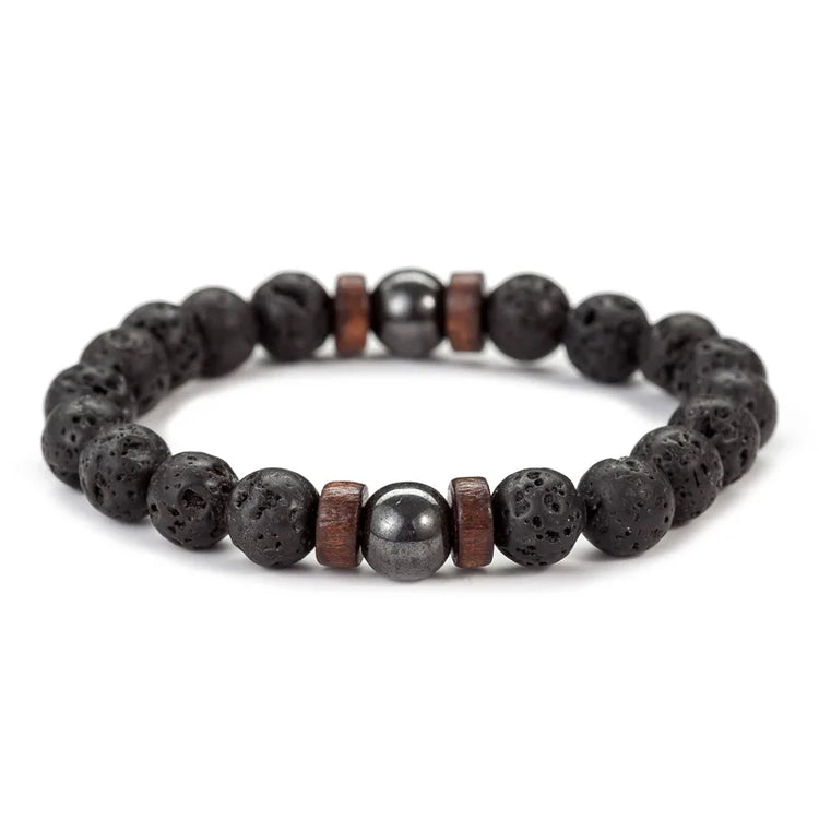 8mm Volcanic Stone Bracelet for Men Lava Wooden Beads Bracelet Tibetan Buddha Male Wrist Chain Jewelry Handmade Elastic Bracelet