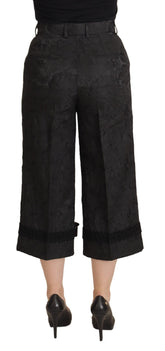 Black Brocade Cropped High Waist Pants
