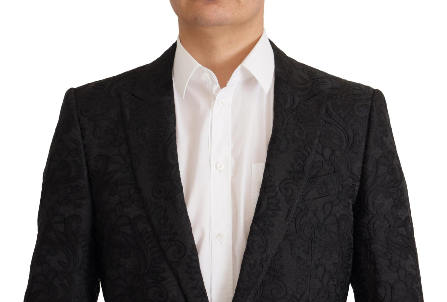 Absolutely stunning, 100% authentic, new with tags Dolce & Gabbana MARTINI The black glitter two piece suit is made of acetate and features a blazer with a lapel, long sleeves, a chest pocket, side pockets with flaps and buttoned cuffs. The pants feature a mid waist, a button fly with zip fly, belt loops, side pockets, back pockets and a regular length.