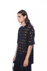 Elevate your wardrobe with the bold sophistication of Nicolo Tonetto’s Round Neck Perforated T-shirt. Expertly crafted in Italy, this black tee exemplifies the brand’s commitment to luxury and style. The high-quality cotton material ensures comfort and durability, while the unique perforated design adds an edge to your casual ensemble. Perfect for those who dare to stand out.