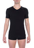 Step into the world where classic meets contemporary with the Bikkembergs Bi-pack V-neck T-shirt. This twin-pack offers not just one, but two opportunities to elevate your wardrobe with the brand’s sleek aesthetic. Crafted from a superb blend of cotton and elastane, these tees promise both comfort and a flattering fit. The timeless black hue ensures versatility and effortless pairing with any outfit, making them an essential duo for the style-conscious gent.