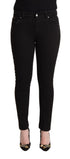 Black Cotton Mid Waist Denim Slim Fit Jeans