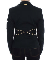 Black Cotton Stretch Gold Studded Blazer Jacket
