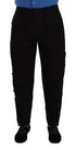 Black Cotton Stretch Tapered Cargo Pants