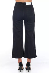 Unleash your bold fashion sense with Frankie Morello’s striking cropped trousers, a masterpiece of Italian craftsmanship. These high-waisted beauties are not just a trendy garment but a fusion of comfort and chic, tailored to accentuate your silhouette. Multiple pockets add a practical edge to these trousers, while the sleek front closure with a zip and button ensures a seamless fit. Frankie Morello takes your wardrobe to new heights of style.