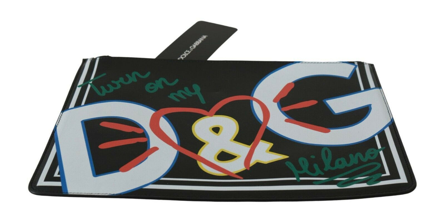 Black DG Print Mens Zipper Coin Purse Leather Wallet