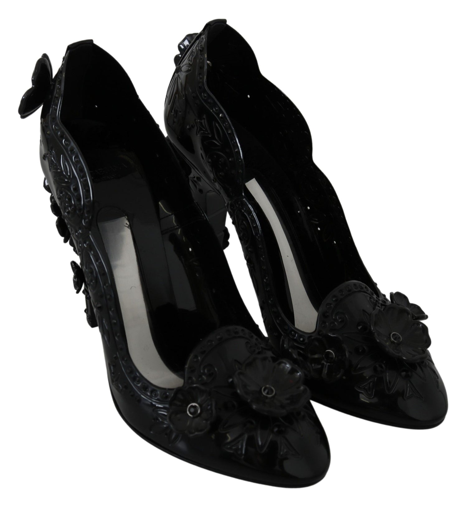 Black Floral Crystal CINDERELLA Heels Shoes