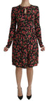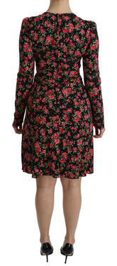 Black Floral Longsleeve Knee Length Dress