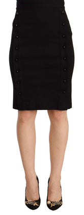 Black High Waist Viscose Knee Length Pencil Cut Skirt