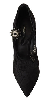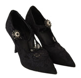 Black Lace Crystals Heels Mary Jane Pumps Shoes
