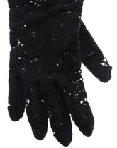 Black Lace Wool Lambskin Fur Elbow Gloves