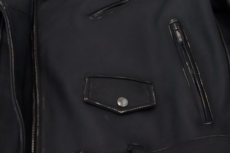 Black Leather Biker Coat Zipper Jacket