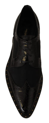Black Leather Broques Sheer Wingtip Shoes