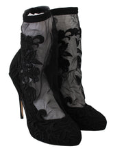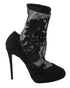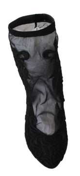 Gorgeous brand new with tags, 100% Authentic Dolce & Gabbana black stretch socks Roses embroidery stilettos booties shoes.