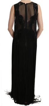 Black Silk Beaded Sequined Sheer Dress