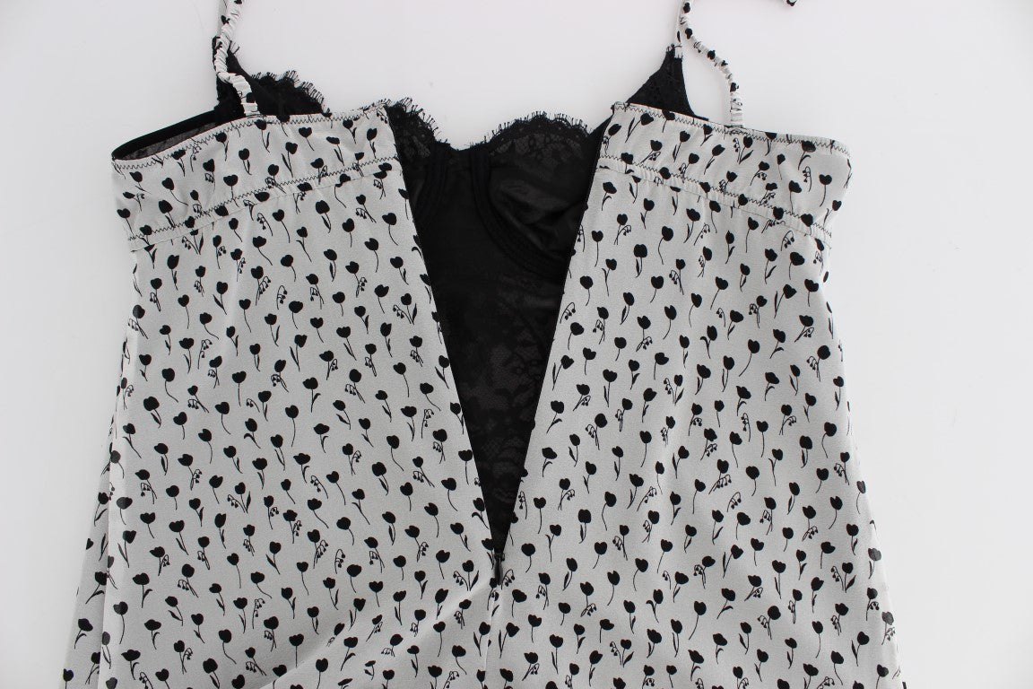 Gorgeous brand new with tags, 100% Authentic DOLCE & GABBANA black and white floral print and lace silk stretch Lingerie chemise babydoll.