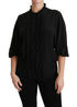 Black Silk Shirt Ruffled Top Blouse