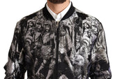 Black Silver Puppi Motive Bomber Jacket