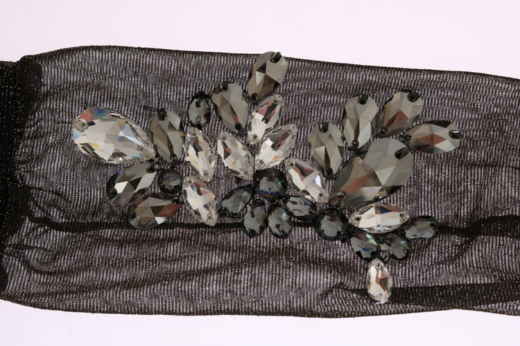 Gorgeous brand new, 100% Authentic Dolce & Gabbana black stretch mid calf high floral crystal embellished stockings socks