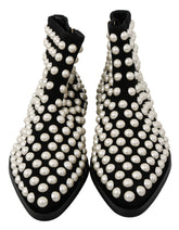 Black Suede Pearl Studs Boots Shoes