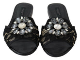 Gorgeous brand new with tags, 100% Authentic Dolce & Gabbana Mules featuring a transparent mesh upper covered with Taormina lace. Satin trims and jewel flower made with multitone crystals. Leather insole, leather sole.