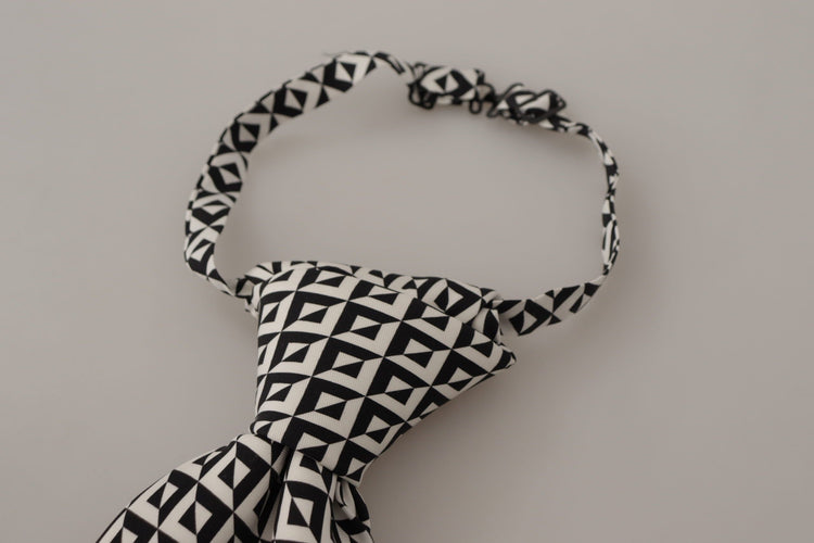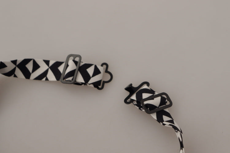Black White Geometric 100% Silk Adjustable Accessory Tie