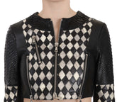 Black White Leather Short Cropped Biker Jacket Coat