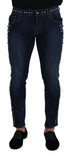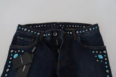 Blue Cotton Studded Low Waist Denim Jeans