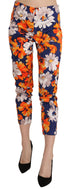 Blue Floral Print Skinny Slim Fit Trousers Pants