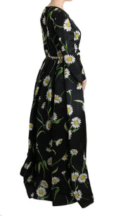 Multicolor Silk Sunflower Print Long Maxi Dress