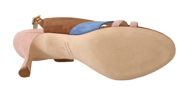 Multicolor Suede Leather Slingback Heels Sandals Shoes