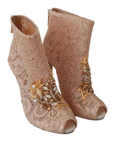 Pink Crystal Lace Booties Stilettos Shoes