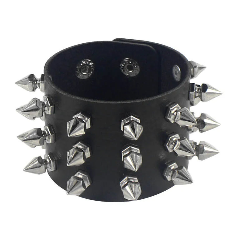 Punk Bracelet for Men Women - Goth Black Leather Wristband with Metal Spike Studded- Spike Rivets Cuff Bangle Adjustable