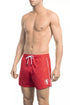 Unleash your poolside charisma with Bikkembergs’ vibrant red swim shorts, featuring a bold front print that captures attention as you bask under the sun. Designed with comfort and style in mind, these shorts come with a convenient elastic waistband and an easily adjustable drawstring, providing the perfect fit for every dive and lap. Two side pockets add practicality to this swimwear staple without compromising on its sleek, trendy appeal. Whether you’re hitting the beach or lounging by the pool, make a splash with these standout shorts from a brand that knows fashion-forward sportswear.