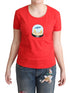 Red Printed Cotton Short Sleeves Tops Blouse T-shirt