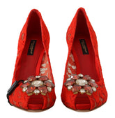 Red Taormina Lace Crystal Heels Pumps