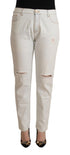 White Cotton Distressed Mid Waist Skinny Denim Jeans