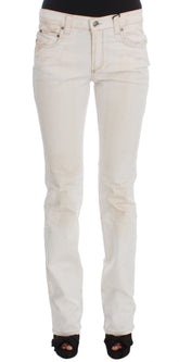 White Cotton Slim Fit Bootcut Jeans