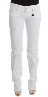 White Cotton Slim Fit Denim Bootcut Jeans