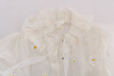 White Daisy Applique Silk Shirt