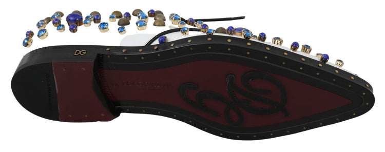 White Leather Crystals Dress Broque Shoes