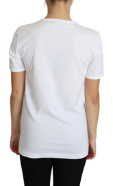 Gorgeous brand new with tags, 100% Authentic Dolce & Gabbana White T-shirt. Made of cotton. Decorated with multicolor crystals, a printed logo and sewn-on heart. Round neck. Short sleeves.