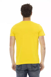 Unleash your bold fashion sense with Trussardi Action’s striking short sleeve T-shirt. Crafted with a blend of premium cotton and viscose, this tee guarantees both comfort and style. Stand out with the vibrant yellow hue and make a statement with the eye-catching front print. Whether you’re hitting the city streets or just lounging casually, this Trussardi Action creation is the perfect fusion of trend and tradition, embodying the brand’s commitment to contemporary style.